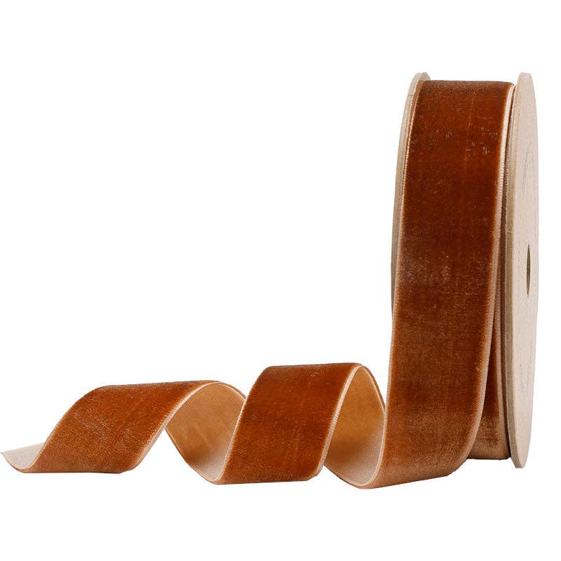 Wrap the season in timeless elegance. Our 1" Velvet Ribbon adds a luxurious touch to every holiday moment—from beautifully wrapped packages tied beneath the tree to simple, nature-inspired accents like pinecones, sprigs of fir, or evergreen garlands. Its soft, rich texture and classic width make it perfect for statement bows, wreaths, and seasonal décor that feels both nostalgic and refined. Available in festive hues like bay leaf, cognac, gingerbread, scarlet, bordeaux, and olive—each spool brings 10 yards of pure holiday magic.