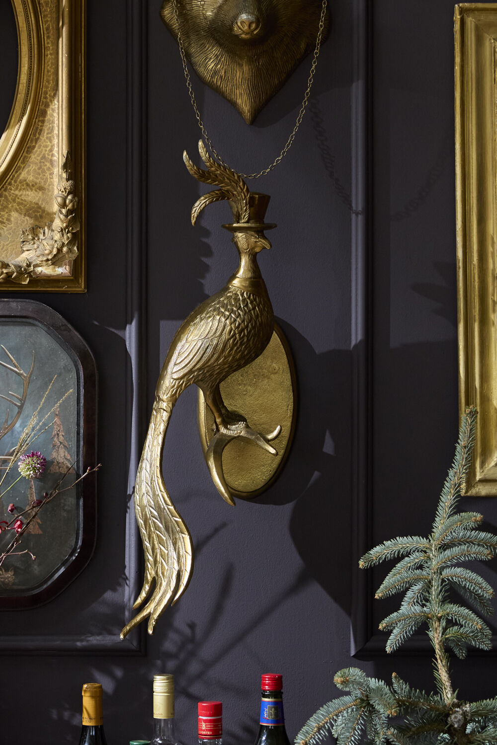 Our Emerson the Pheasant Wall Mount is one of our favorite members of the E & E Collection. He looks quite dapper in his top hat and tails! You can easily hang him on your wall with the keyhole on the back. He is made of durable cast metal and measures 8.25” x 27.25”. Emerson weighs 8.25 pounds!