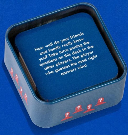 Discover who truly knows you best with this fun question deck. Perfect for sparking laughs at parties or family reunions, players can choose to give points for the most accurate or the funniest answers! Comes in a compact tin with 51 colorful cards, ideal for two or more players.