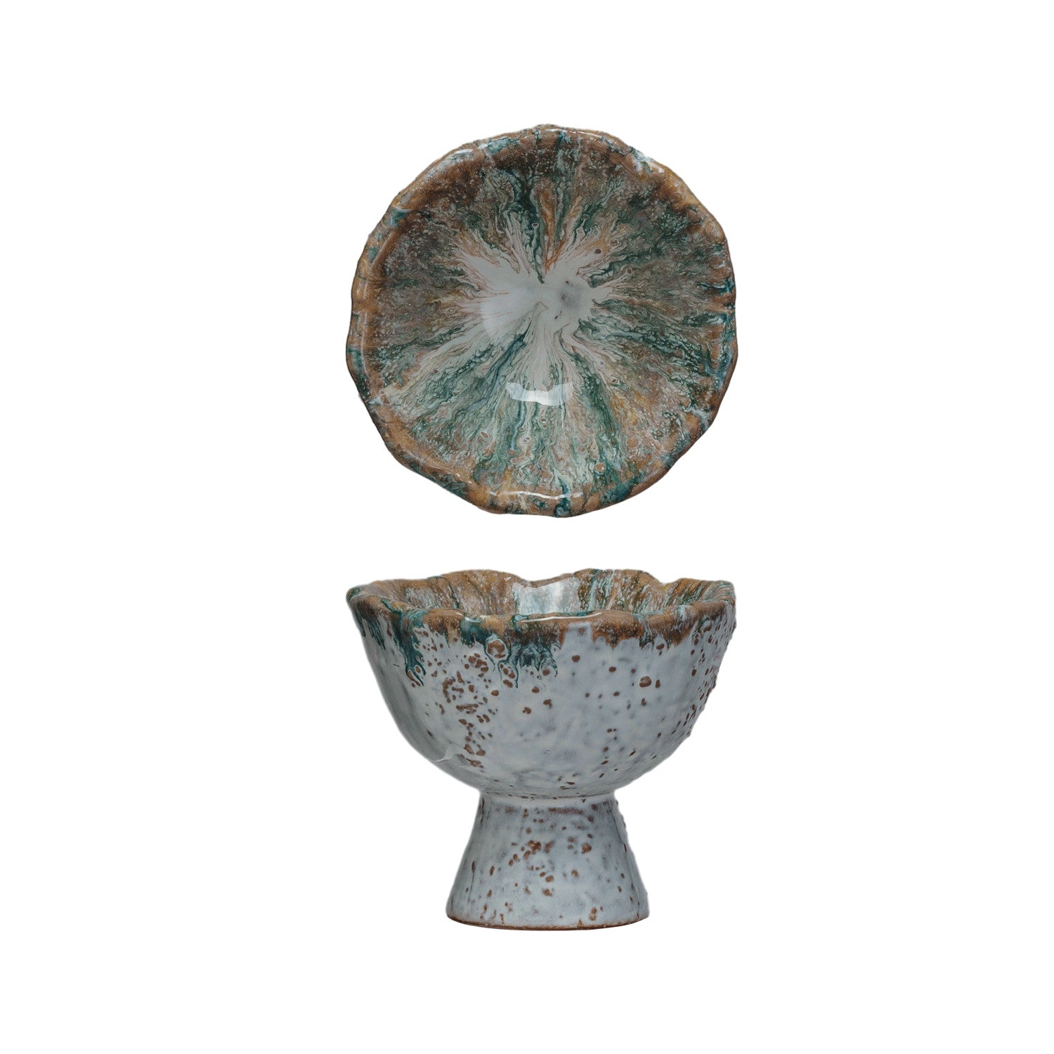 Stoneware Footed Bowl, Reactive Glaze, 2 Sizes