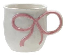 Invite a bit of charm into your daily rhythm with this beautifully crafted stoneware mug. Finished in a warm cream glaze, it pairs classic simplicity with a playful twist—a bow-shaped handle available in sky blue, moss green, baby pink, or butter yellow.